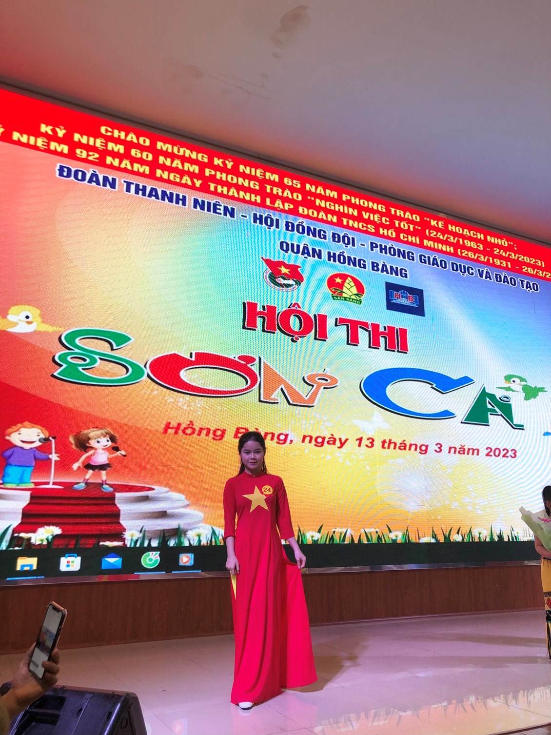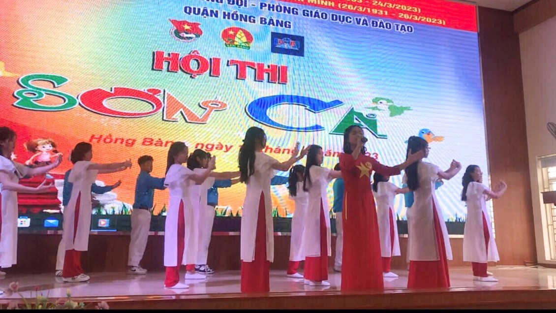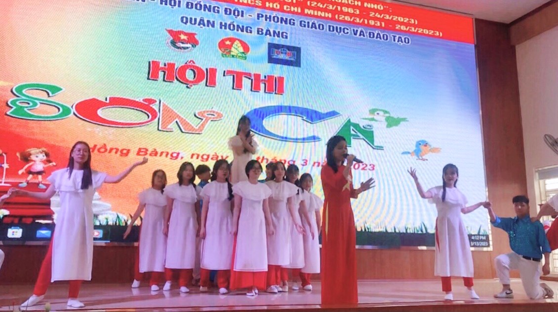 Thực hiện kế hoạch số 21/KH-LN ngày 28 tháng 2 năm 2023 giữa Quận Đoàn - Phòng Giáo dục & Đào tạo quận Hồng Bàng về việc tổ chức hội thi Sơn ca cấp quận năm học 2022-2023. Liên đội trường THCS Bạch Đằng đã lựa chọn tiết mục " Khát vọng" do học sinh Vũ Trâm Anh - lớp 8A1 tham gia hội thi