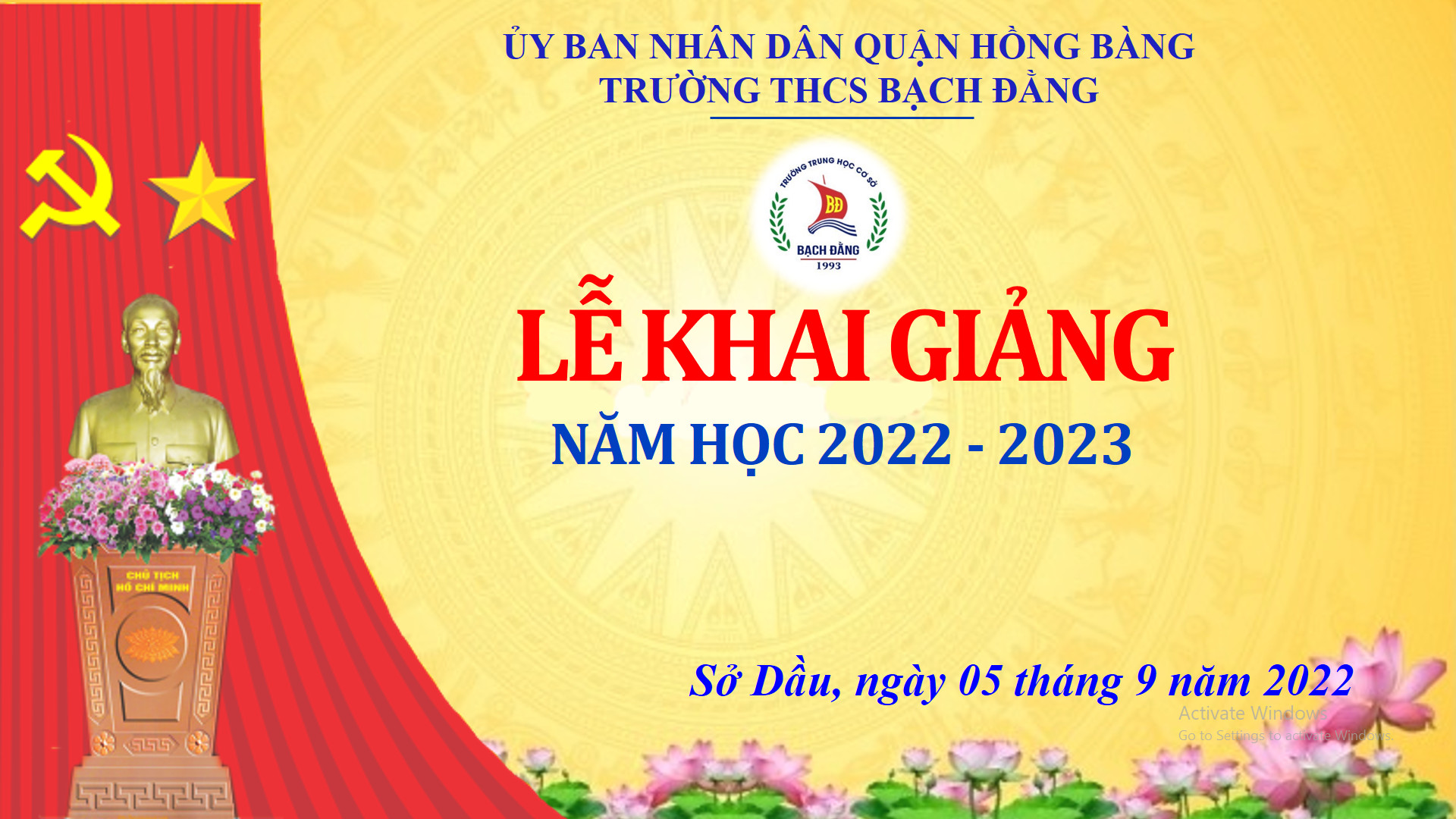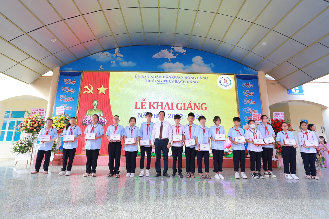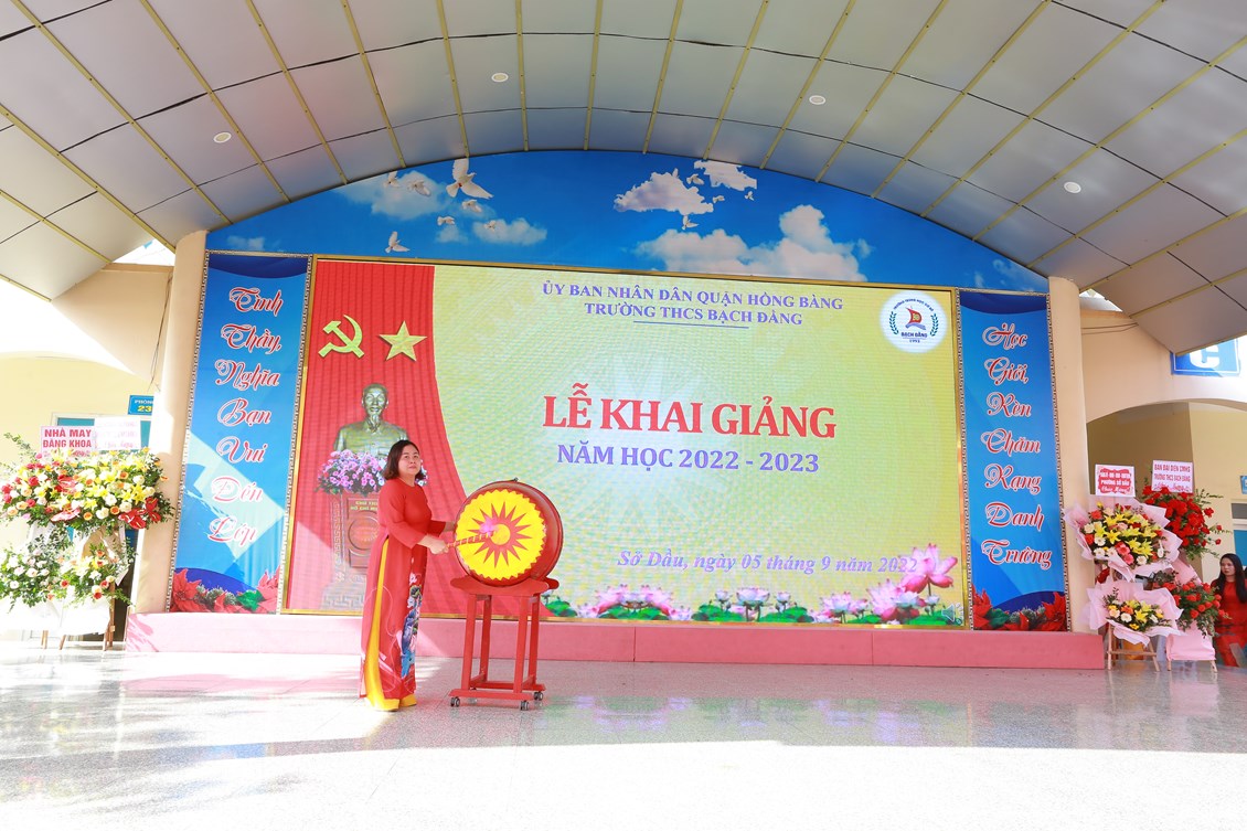 Cùng hòa chung trong không khí rộn ràng của ngày Lễ khai giảng năm học mới, thực hiện Kế hoạch số 193/KH- UBND ngày 29/8/2022 của UBND quận Hồng Bàng về tổ chức khai giảng năm học 2022-2023; Công văn số 253/PGDĐT ngày 25/8/2022 của Phòng GD&ĐT về việc hướng dẫn công tác năm học mới và tổ chức khai giảng năm học 2022-2023; sáng ngày 05/09/2022, trường THCS Bạch Đằng long trọng tổ chức Lễ khai giảng năm học mới 2022- 2023.