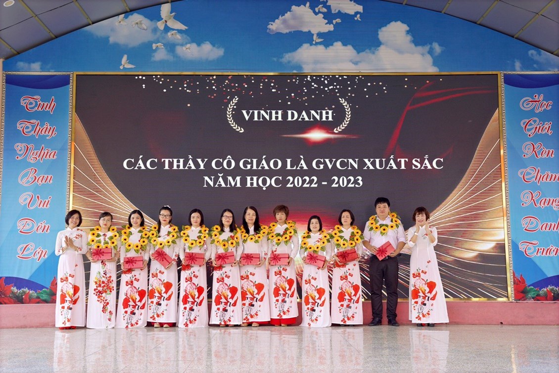 + Biểu dương 13 thầy cô đạt danh hiệu Giáo viên chủ nhiệm xuất sắc cấp trường, 5 thầy cô chủ nhiệm giỏi cấp quận.
